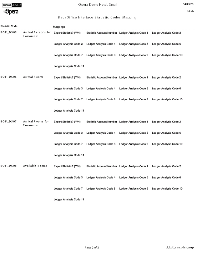 The report output is based on the configuration of the mappings for Back Office. This is configured in System Configuration>External>Back Office>Configuration.