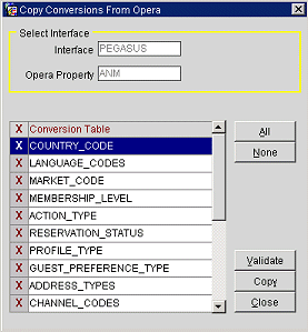 All. Select all conversion codes from which to copy the OPERA values into OXI.