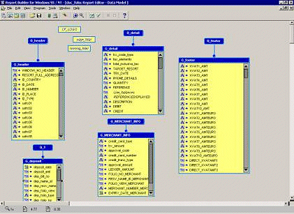 Double click on the logo to the left of the Data Model. The Data Model is normally separated into sections depending on the type of sample that you are using. For our example a folio is separated into five sections: Detail, Footer, Merchant Info, and Deposit Info (Q 1).