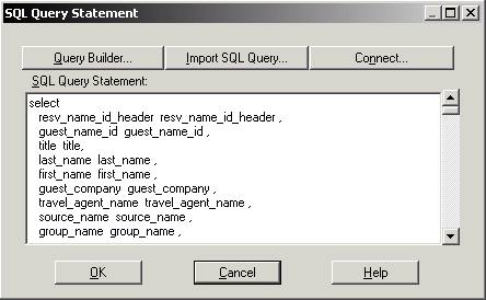 After double clicking, the SQL Query Statement window is displayed.