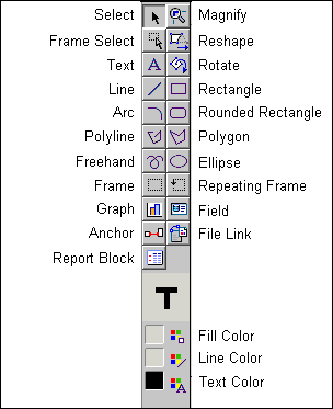 Selects one or more objects for an operation. When an object is selected, its control points become visible. By shift-clicking, you can select multiple objects or groups. When you select an object in the Report Editor, it is also selected in the Object Navigator |