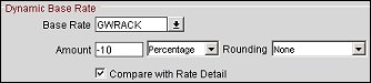 By not selecting the Compare with Rate Details check box, any rate amounts defined in the Rate Detail tab will not be used when conducting the rate calculations based on the defined Dynamic Base Rate rate code.
