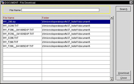 Note: For zipping of export files to work correctly, the FORMS60_OUTPUT registry setting must use a mapped drive letter on the application server and cannot use a UNC (Universal Naming Convention) path. This is a limitation of PKZIP, a DOS utility, which does not recognize UNC pathing. For example, the path could be D:\MICROS\OPERA\EXPORT but cannot be \\machinename\MICROS\OPERA\EXPORT.