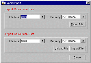 The upper part of the Export/Import screen is called the Export Conversion Data.