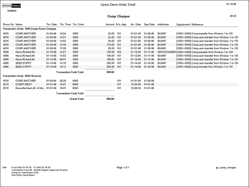 Comp Transaction Code. Multi Select LOV of all configured Comp Transaction Codes. Default is ALL. Payment transaction codes that are configured for comp windows are also displayed in the list, to allow the user to include or exclude the comp settlement transactions on the report. Comp Transaction Codes are configured in Configuration->Comp Accounting->Comp Transactions.