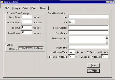 Note:  This can be used to alert all systems in case ORS, a property, or a thread goes down. In such a fail situation an email notification could be sent to the addressees listed in the fields below.