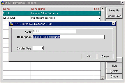 Display Sequence. Enter a number that determines the display order for this turndown reason in display lists. Turndown reasons that do not have a number assigned will appear in alphabetical order following the turndown reasons that have a sequence number assigned.