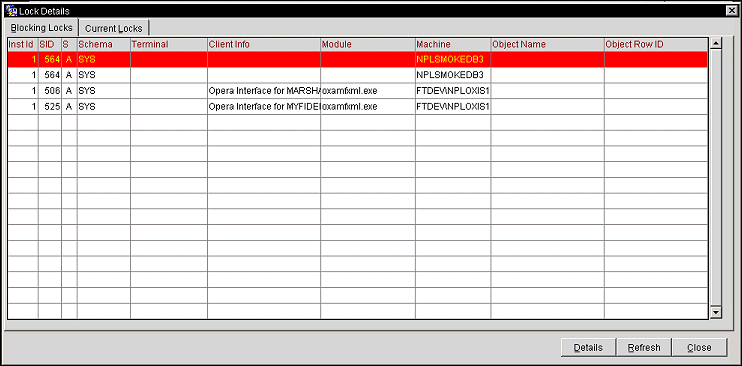 Details. Displays the Details pertaining to the blocking lock (See Session Statistic Details for information).
