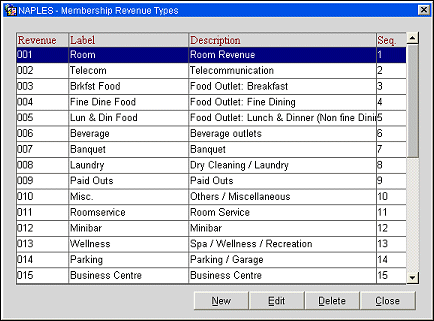 To delete a membership revenue type, highlight your choice and select the Delete button.