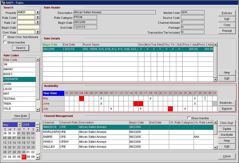 The Availability area allows users to view and update rate availability for up to two months beyond the current month.
