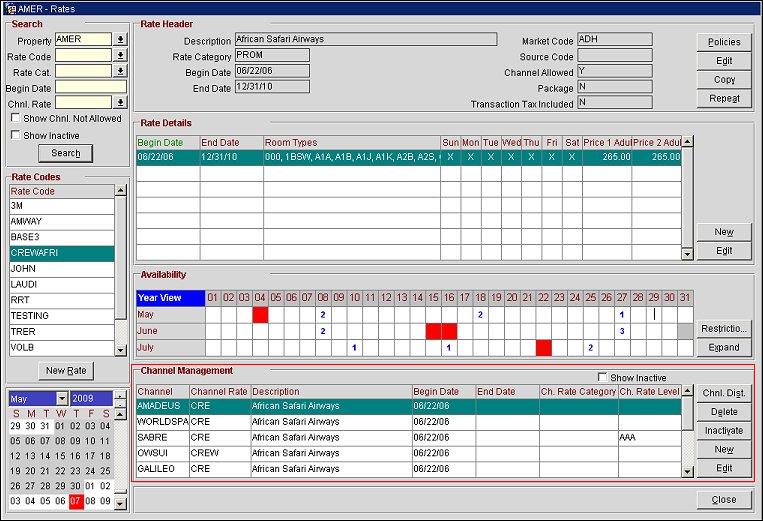 The Channel Management area displays rate codes that are published to applicable channels.