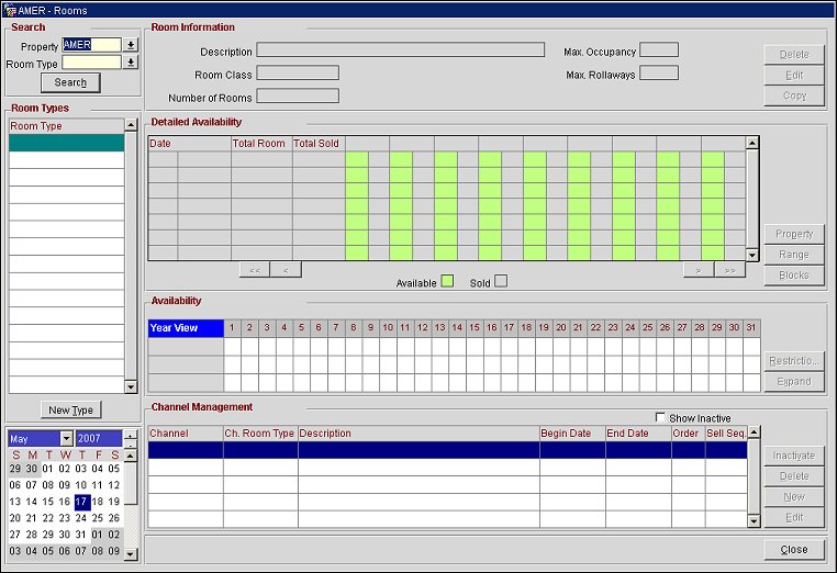 Displays room types based on the selection criteria entered in the Search area.