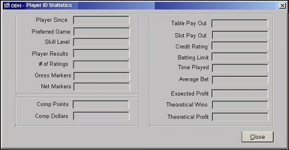 To accommodate the varying needs of the industry, the OPERA guest profile has an additional Player Stats button that once selected, will invoke an online request to the respective PTS for specific information such as player ranking, accrued comp points/dollars, gaming spends, etc. This tab can also be called from Comp Accounting menu.