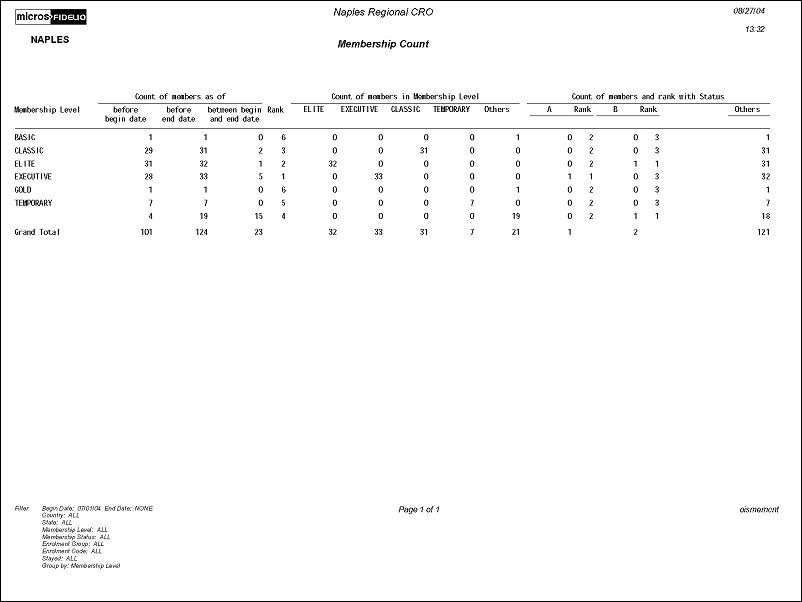 Membership Level. The report will be grouped according to the Membership Level you selected on the Membership Level drop down list.