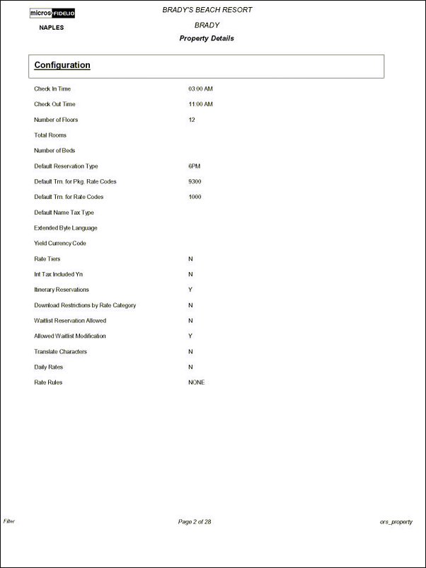 - Configuration - Check in, Check out, Number of rooms, Number of beds, Package rate codes