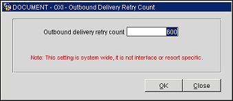 When accessed from the OXI>Interface Configuration>Delivery Retry Setup menu option, this functionality allows a user to define the retry value for HTTP messages that fail to post because the server is unavailable.