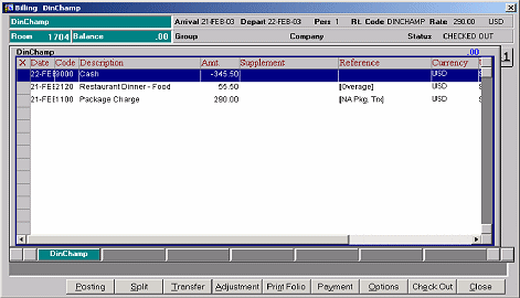 The guest account would appear from cashier billing as follows: