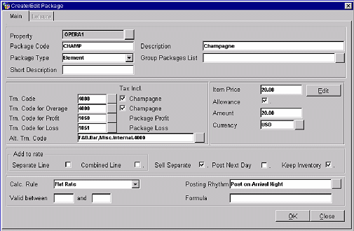 Item Price. This is the cost of the package to the property. The system will reference this amount when posting allowances for the package.