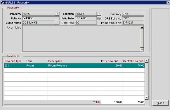ORS users can enter and view amounts for non-resident (passerby) guest revenue and create a membership transaction. Importing of non-resident and non-stay revenues for membership points calculations and CIS history are also available. These operations are available when the OPR<version number>ORS license code is active.