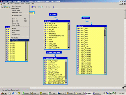 Open the SAMPLE_GSTFOLIO report in Report Builder. Select the Data Model.
