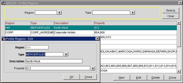 Profile merge rules are validated based on profile type and region. Regions only have to be configured in ORS to define merge rules differently for various property groupings. If that is not necessary and the differentiation between interface IDs is sufficient, the NONE region can be utilized for all properties as a region in the Profile Regions setup.