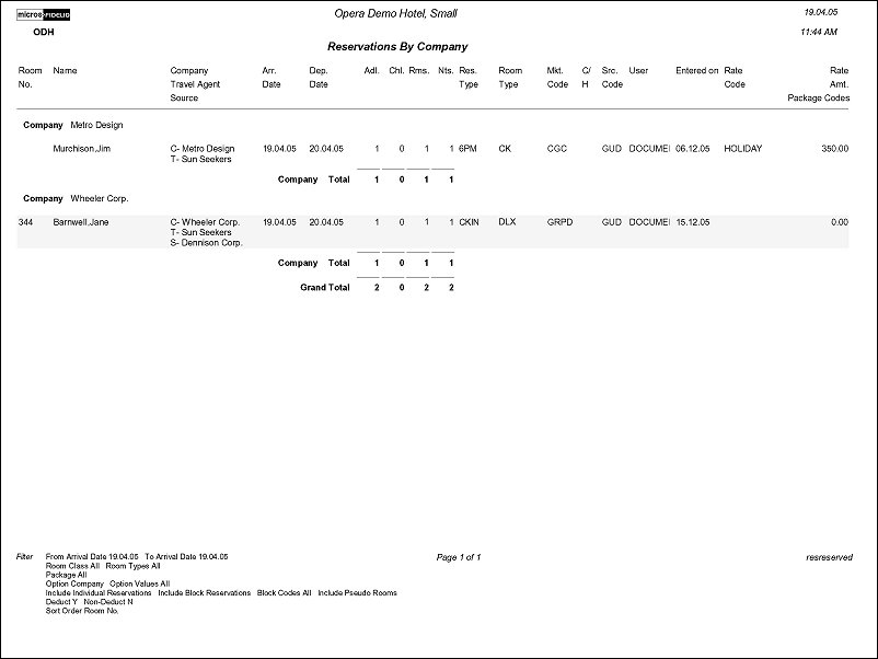 The report also can include Pseudo Room reservations as well as Deduct and Non Deduct reservations.