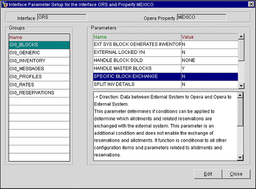 This topic serves as a functional description of how the OXI parameter OXI_BLOCKS > SPECIFIC BLOCK EXCHANGE parameter can be applied. The parameter OXI_BLOCKS > SPECIFIC BLOCK EXCHANGE can be applied to determine which allotments and their related reservations are exchanged with the external system. This parameter is an additional condition and does not enable the exchange of reservations and allotments and its function is conditional to all other configuration items and parameters related to allotments and reservations.