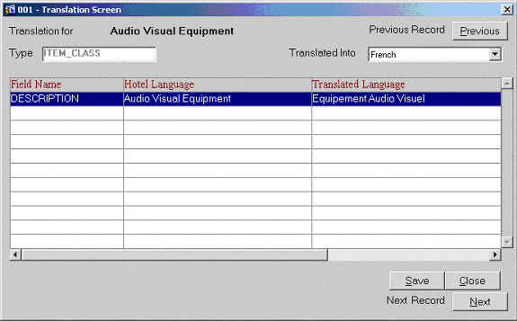 Once Item Classes have been created use the Alt + T hot key from the Name grid to display the Translation screen.