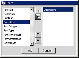 For the Reference and Supplement attribute options, multiple attributes can be selected for each field with the Select screen as displayed below. This options screen will allow for attributes to be added and removed, along with moving the order in which they are displayed with the up and down arrows.